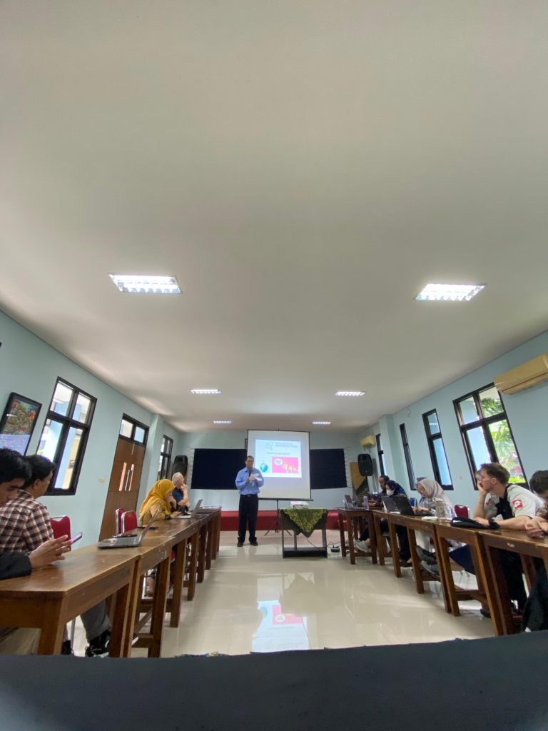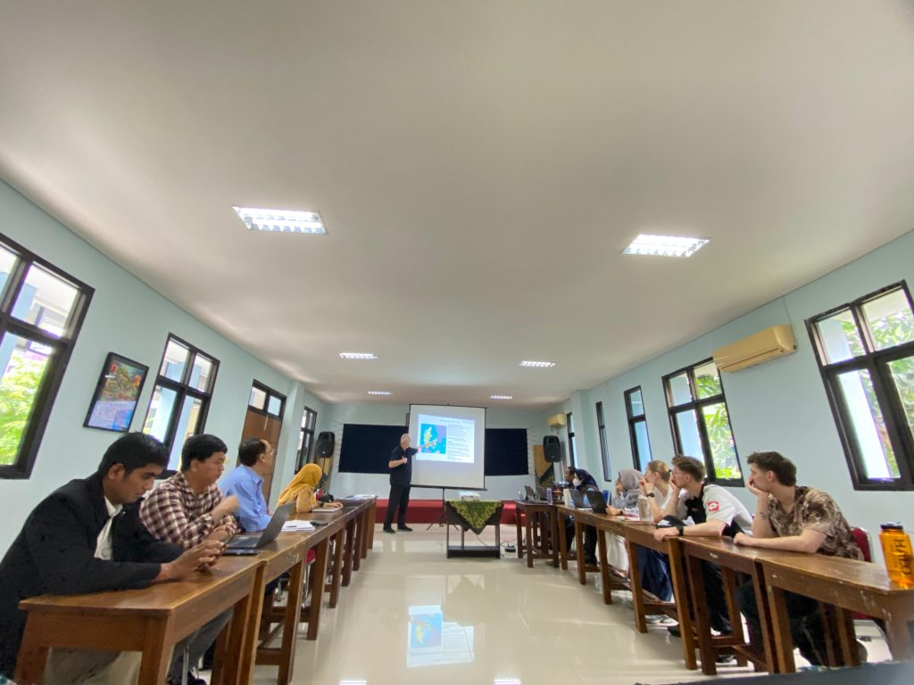 Sambutan selanjutnya disampaikan oleh Koordinator dari Denmark, Assoc. Prof. Erik Juul, Ph.D., dari VIA College University Denmark. Pada kesempatan tersebut, beliau memaparkan materi terkait International Internship/Teaching Practice, sekaligus menyampaikan harapan agar kegiatan praktik mengajar ini dapat menjadi sarana pembelajaran lintas budaya yang bermakna bagi mahasiswa asing maupun seluruh warga sekolah.
