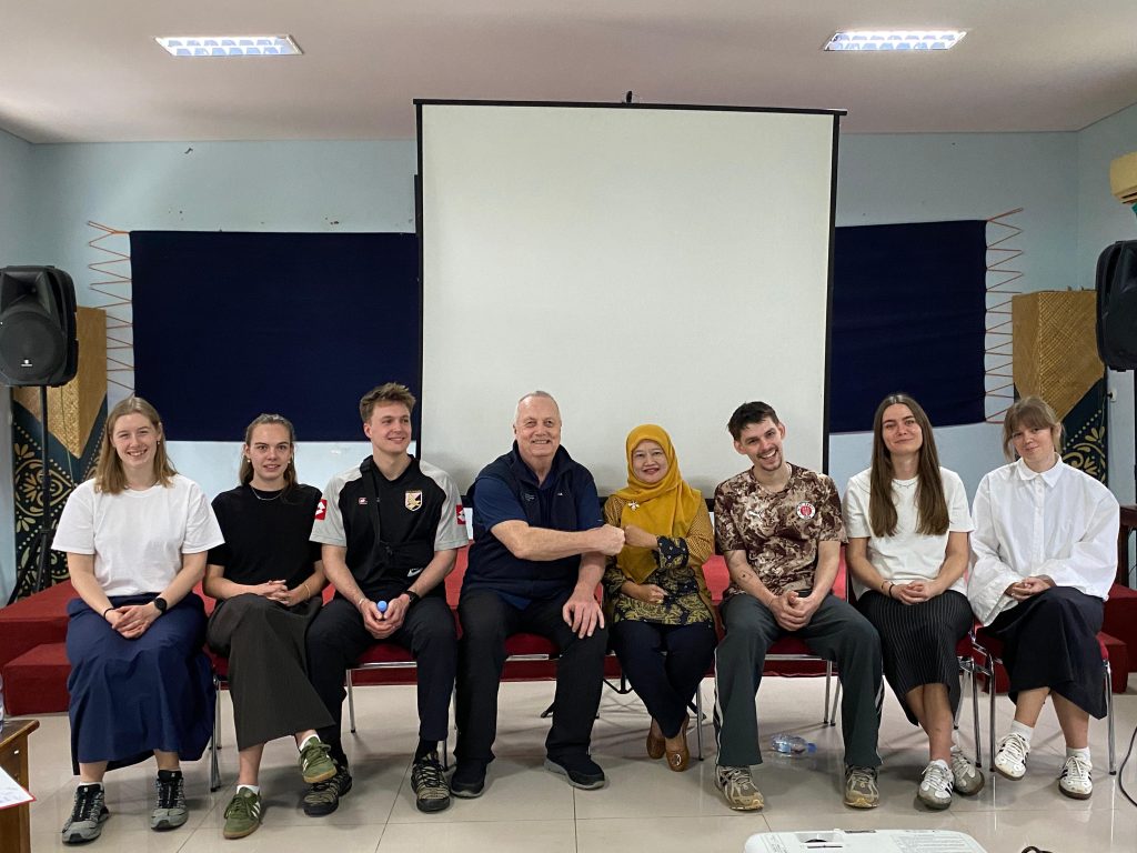 Turut hadir pula Koordinator Mahasiswa Asing dari Denmark, yaitu Beni Saptiyanto, S.Pd., M.Pd., Gr., Laila Damayanti, S.Pd., M.Pd., Gr., Rizky Sania, S.Pd., M.Pd., Gr., Lilik Lutfiani, S.Pd., Salma Nabila Putri, S.Pd., Gr., dan Shinta Aisa Damayanti, S.Pd., Gr., yang akan mendampingi serta mendukung kelancaran pelaksanaan kegiatan praktik mengajar selama program berlangsung.